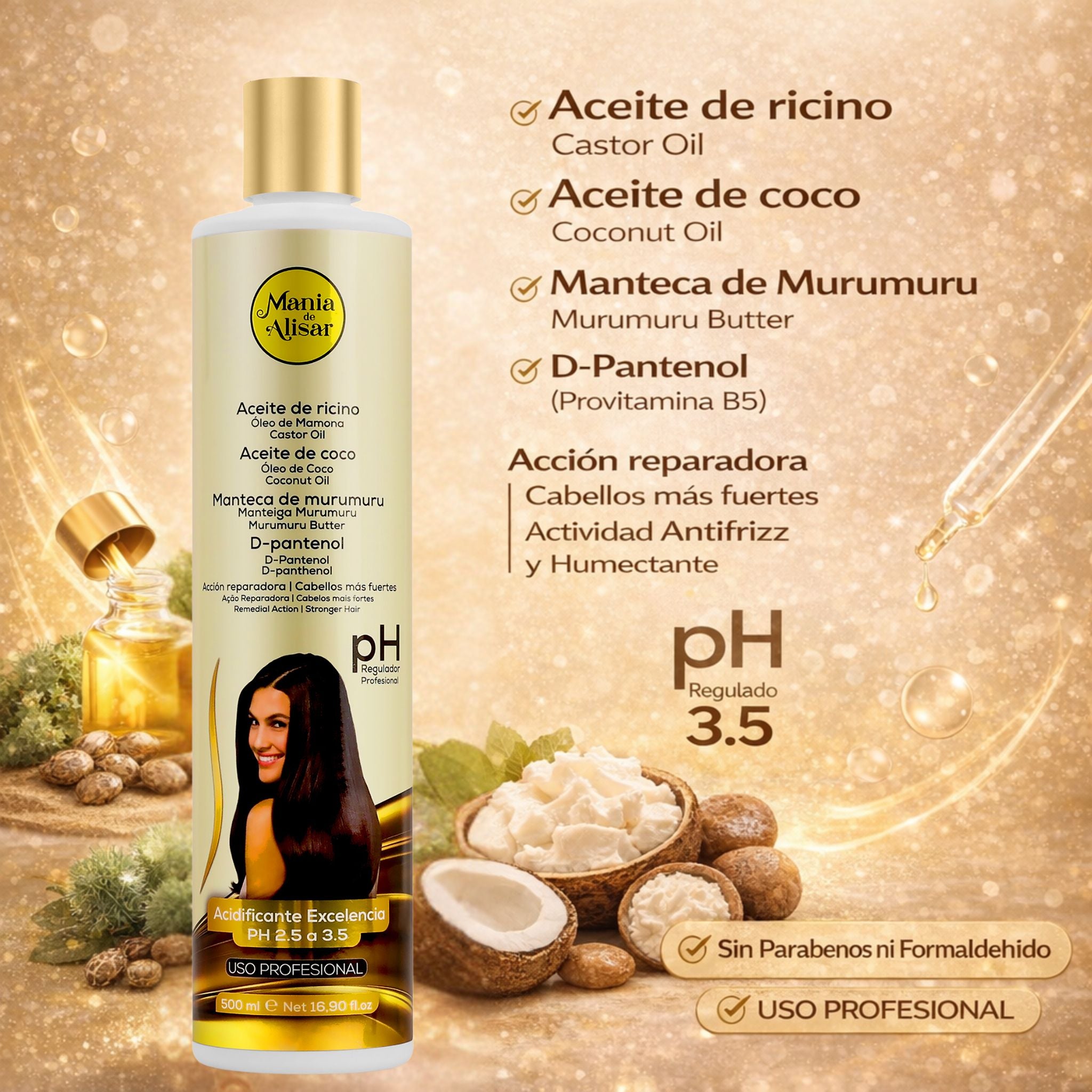 La manteca de murumuru ayuda a que el cabello recupere elasticidad, hidratándolo en profundidad. Él