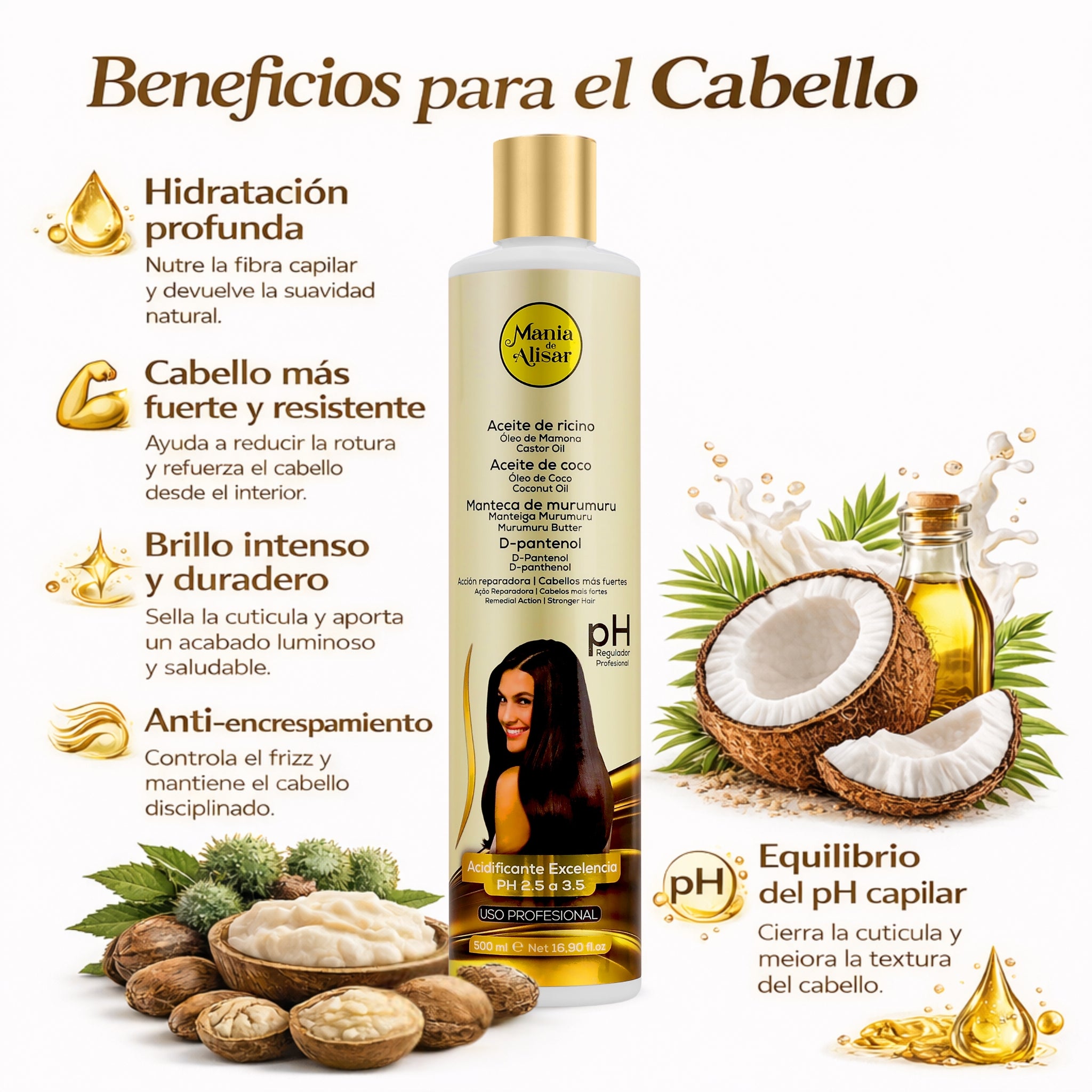 mejora la flexibilidad y fuerza del cabello, junto con la protección contra el daño ambiental. Además, su