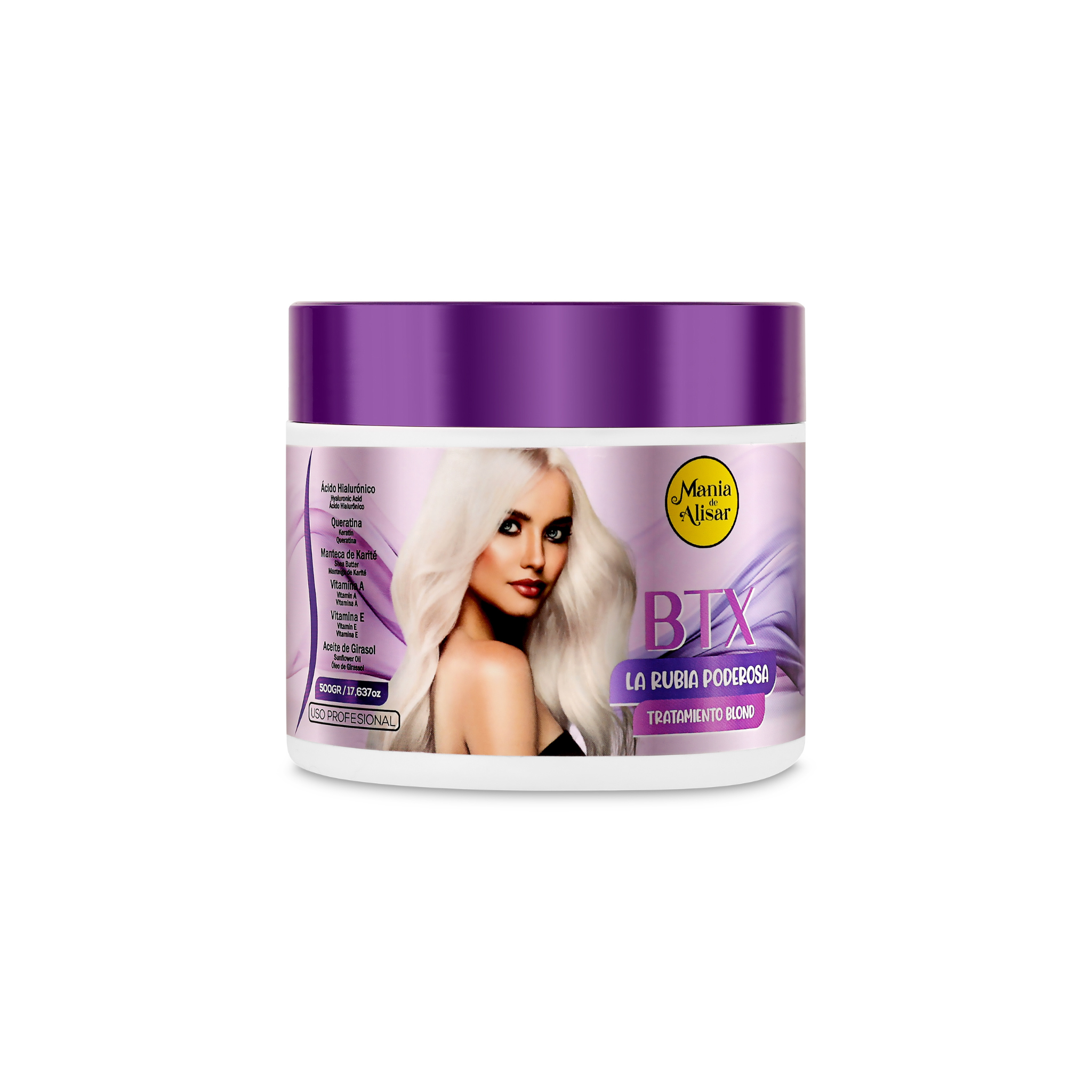 El Btx Matizador Rubia Poderosa de Mania de Alisar, es especial para cabellos rubios y con mechas, tiene el poder de rejuvenecer la fibra capilar, reconstruyendo la fibra y reduciendo el volumen y el frizz, de forma suave y de rápida absorción. Su innovadora fórmula contiene ingredientes activos especiales que controlan el volumen, hidratan, aportan brillo y suavidad y evitan que el cabello rubio cambia de color, pero es muy importante que dependiendo de su metabolismo y la temperatura de la plancha eso puede pasar. Por eso es muy importante que siga bien el paso a paso, y usar un buen protector térmico.