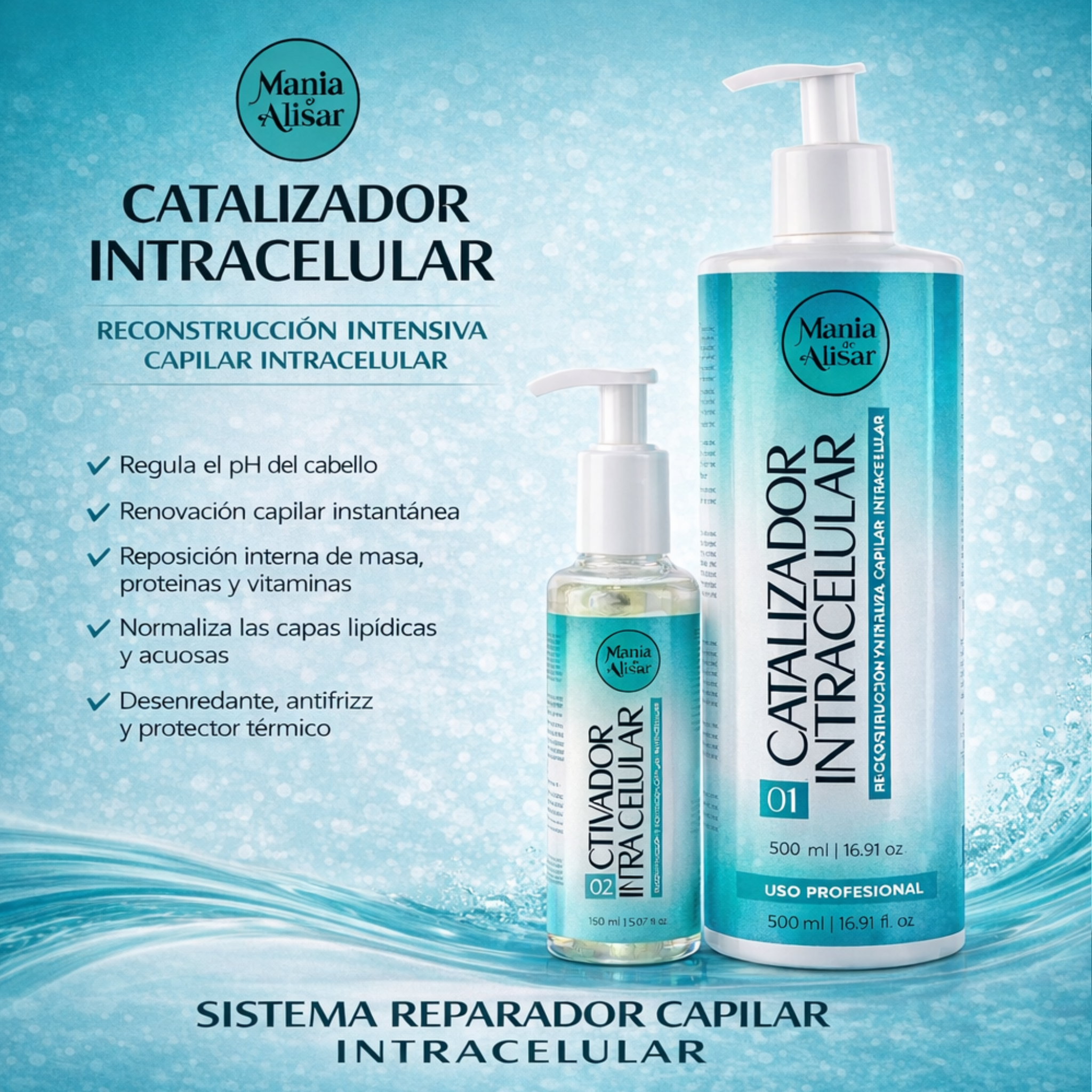Una combinación de proteínas y polipéptidos especiales que, en combinación con el Regulador de Agua Ácida, favorece la recuperación capilar. Restaura los lípidos, fortalece, repara, aumenta la resistencia capilar hasta 10 veces, rehidrata, previene la rotura química, reequilibra el pH, proporciona acción antiedad y reduce el encrespamiento. Proporciona equilibrio del pH, hidratación, renovación lipídica y nutrientes para la resistencia de la fibra capilar, protección interna y acción anticontaminación.